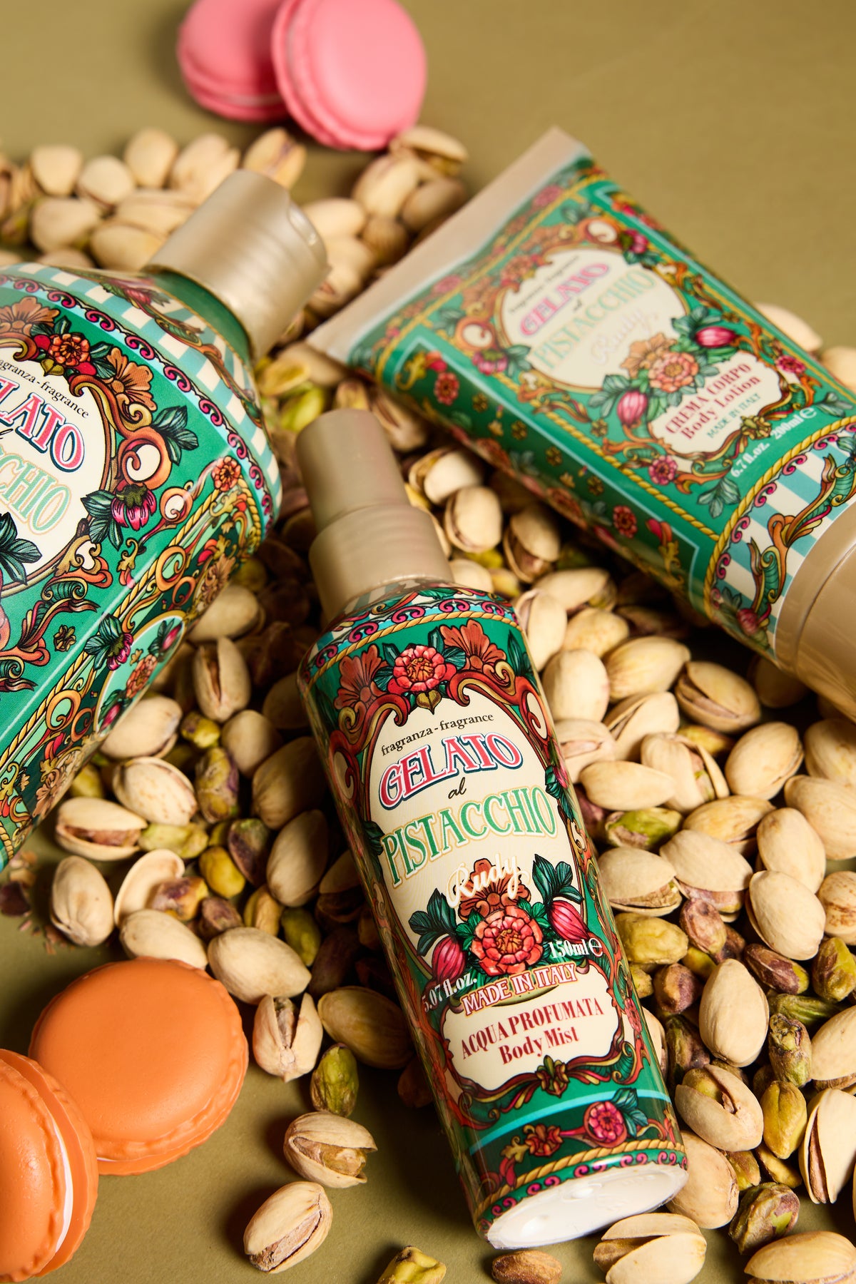 • Gel de Ducha: limpia con suavidad mientras envuelve la piel con notas cremosas y golosas de pistacho salado y almendra dulce. ¡Un verdadero placer bajo la ducha!