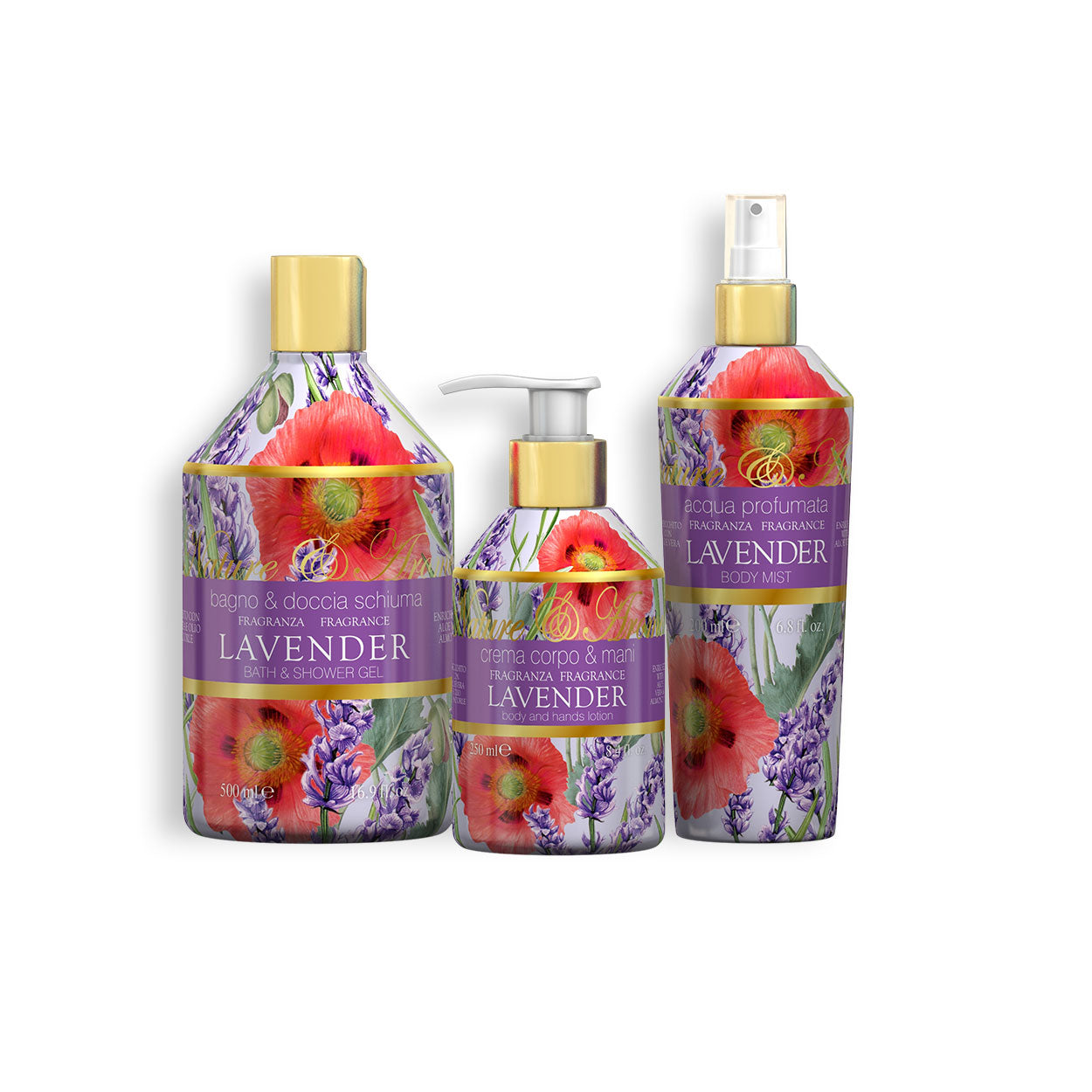 Crema de manos y cuerpo (250 ml): Hidrate en profundidad con la crema de manos y cuerpo de lavanda. Rica en ingredientes nutritivos, esta crema envuelve la piel en un velo de suavidad y le acompaña con su delicada fragancia durante todo el día.