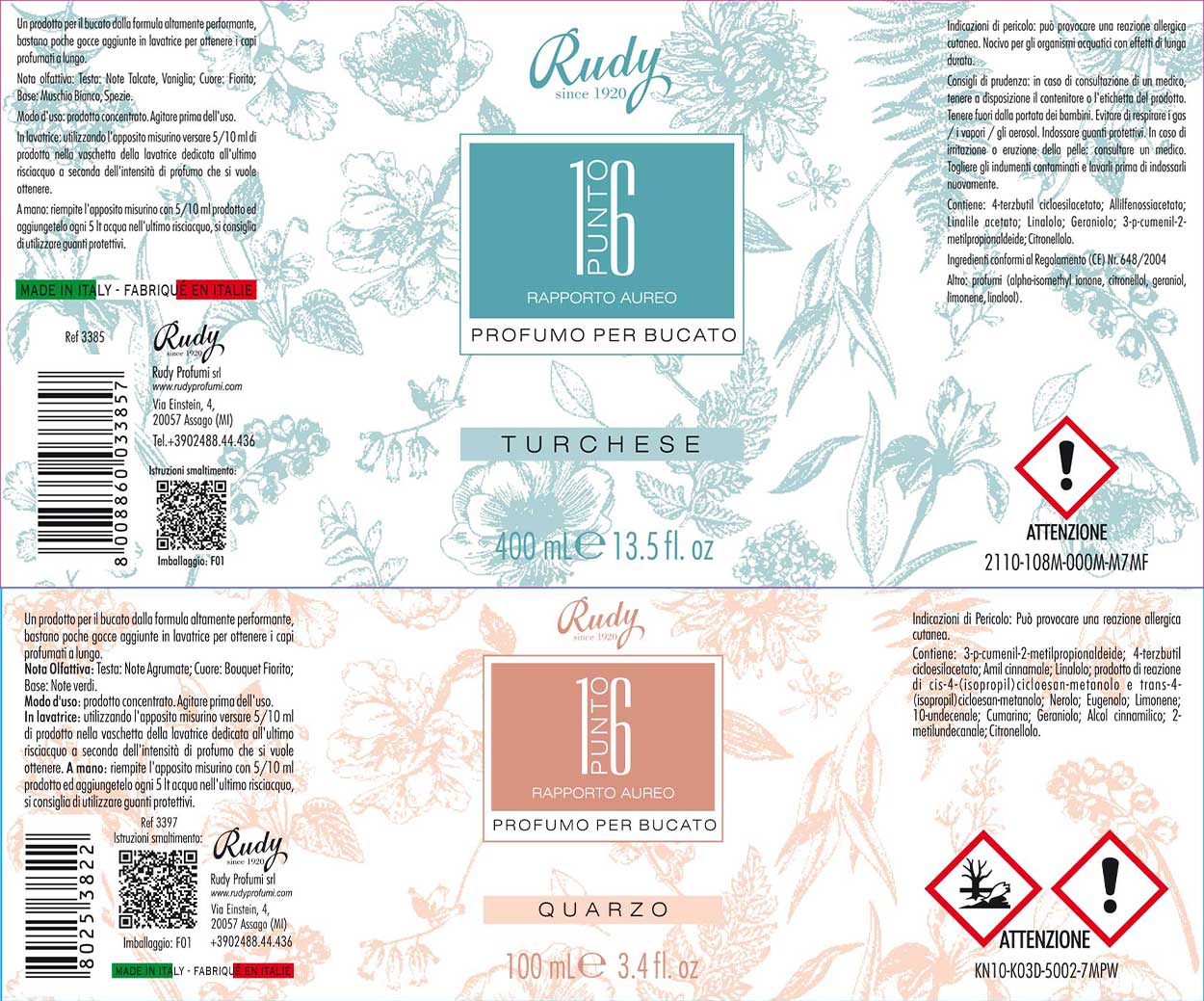 Na máquina de lavar: utilizando o medidor apropriado, despeje 5/10 ml do produto na bandeja da máquina de lavar dedicada ao último enxágue, dependendo da intensidade do perfume que deseja obter.